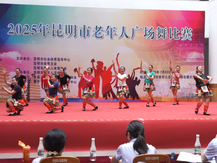 7月25日,为期三天的2025年昆明市老年人广场舞比赛在昆明市老年人活动中心圆满结束。来自五华区、盘龙区、石林县等地的13支代表队、300余名老年舞蹈爱好者齐聚一堂,以舞会友,充分展现了春城老年人积极向上的精神风貌和对健康生活的追求。本次赛事由昆明市社会体育指导中心、昆明市体育总会、昆明市老年人体育协会联合主办,昆明市老年人活动中心承办,并得到了全市各县(市)区相关单位及社会艺术团体的积极响应。